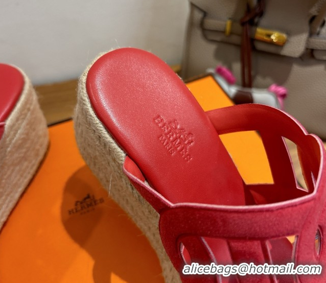 Affordable Price Hermes Lipari Wedge Slides Sandal in Suede Red 1222093 2026
