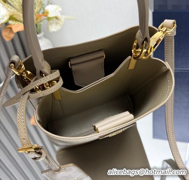 Affordable Price Prada Panier mini Saffiano leather bucket bag 1BA217 Beige 2025 (New Tag)