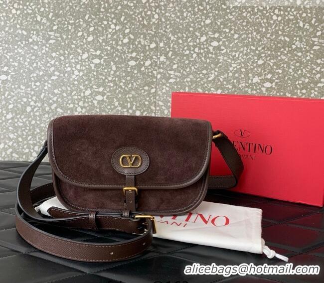 Famous Brand Valentino Antibes Small Shoulder Bag in Suede 2088 Dark Brown 2026