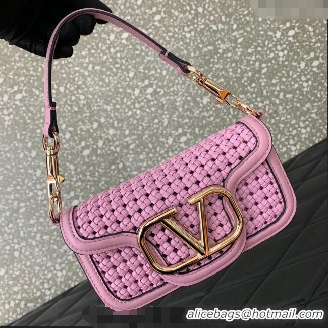 Affordable Price Valentino Loco Small Shoulder Bag in Woven Leather 5041 Pink 2024
