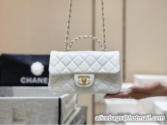 Market Sells Chanel Mini Flap Bag with Top Handle in Grained Shiny Calfskin AS5701 White 2025 Top Quality