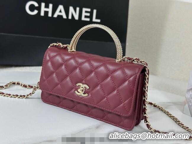 Luxury Cheap Chanel Lambskin Clutch with Chain and Top Handle Bag AP4831 Burgundy 2025