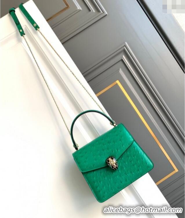 Best Design Bvlgari Serpenti Forever Small Top Handle Bag in Ostrich Pattern Calf Leather 30021 Green 2024