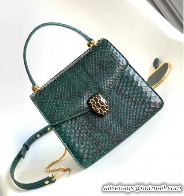 Buy Discount Bvlgari Serpenti Forever Small Top Handle Bag in Shiny Python Karung Skin 30022 Green 2024