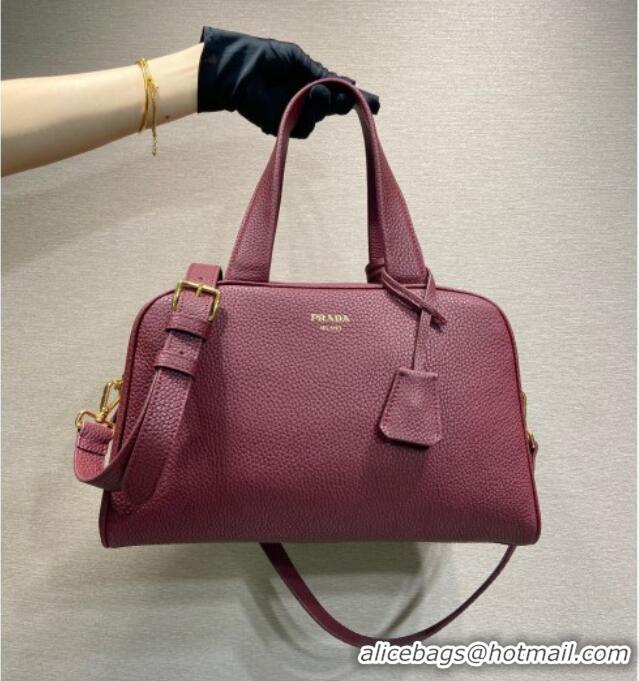 Best Design Prada Large leather top-handle bag 1BB148 Dark Burgundy 2025