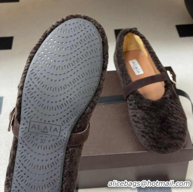 Best Grade Alaia Ballet Flats in Shearling Wool Dark Brown 2026 AL102911 1029152