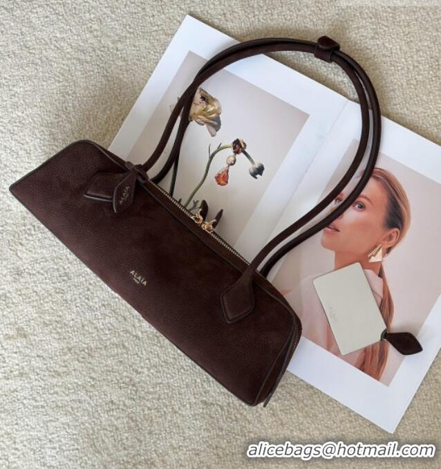 Your Position: Home > Alaia Bags > Best Grade Alaia Le Tecket Medium Long Shoulder bag in Grained Nubuck 8815M Dark Brown 2026