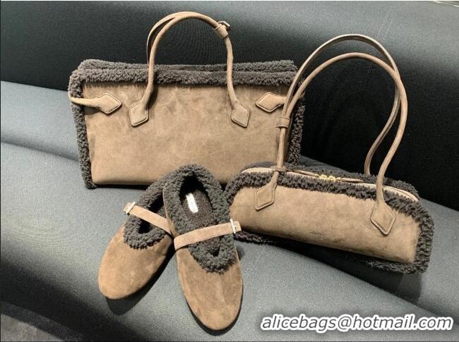 Luxurious Alaia Le Tecket Medium Long Shoulder bag in Suede 0808 Dark Brown 2024
