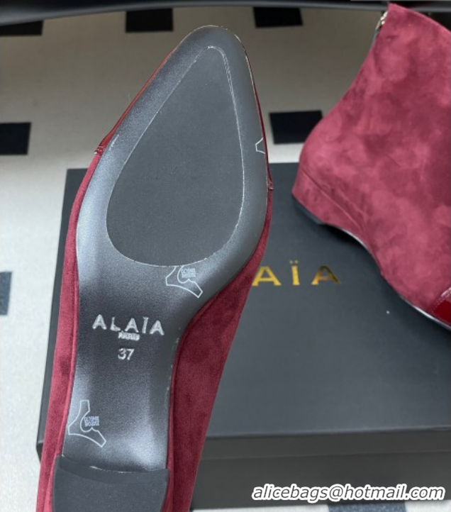 Best Grade Alaia Suede and Patent Leather Ankle Boots Burgundy AL102902 1029111