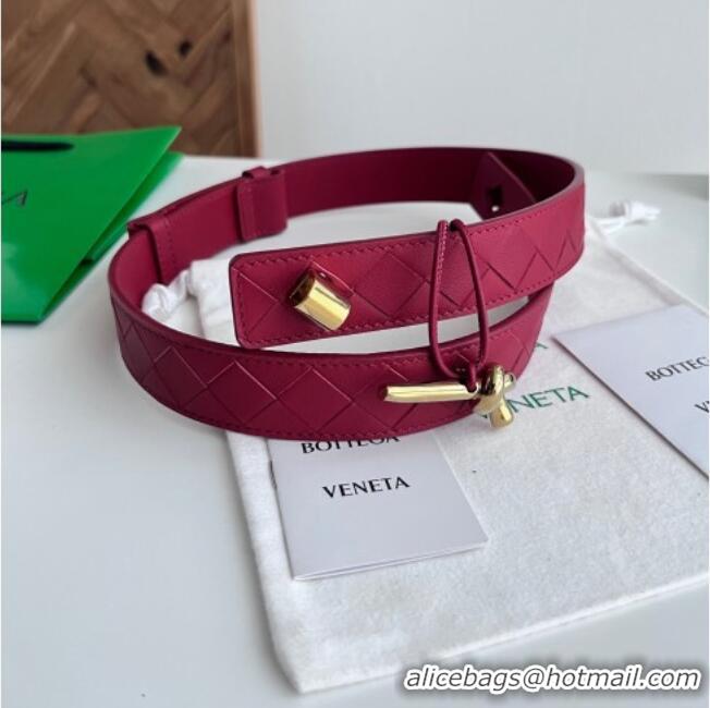 Best Grade Bottega Veneta Andiamo Intrecciato Leather Belt 3cm with Knot Buckle 84066 Red 2025