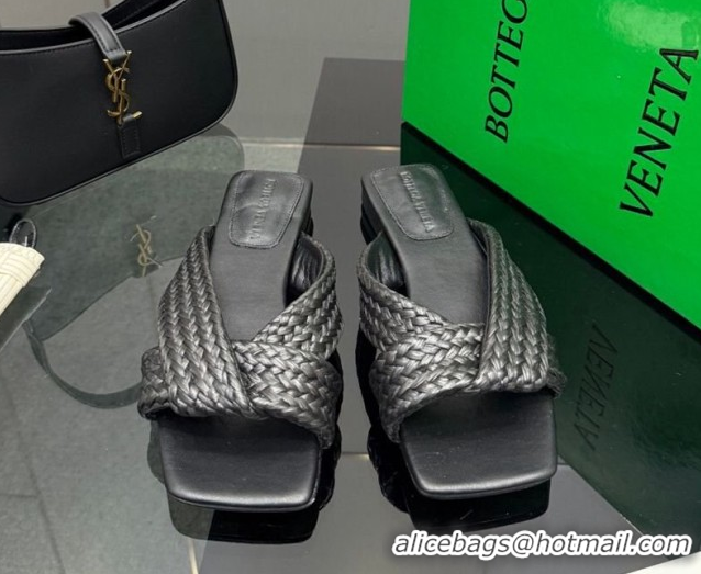 Buy Luxury Bottega Veneta Riva Flat Slides Sandal in Braided Straw 861494 Black 2026