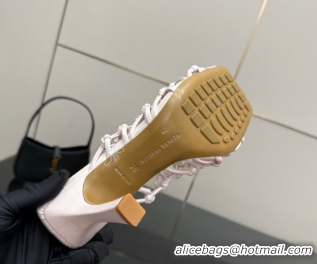 Perfect Bottega Veneta Riva Heel Mules 9cm in Woven Knotted Leather with Frog Charm White 0823007