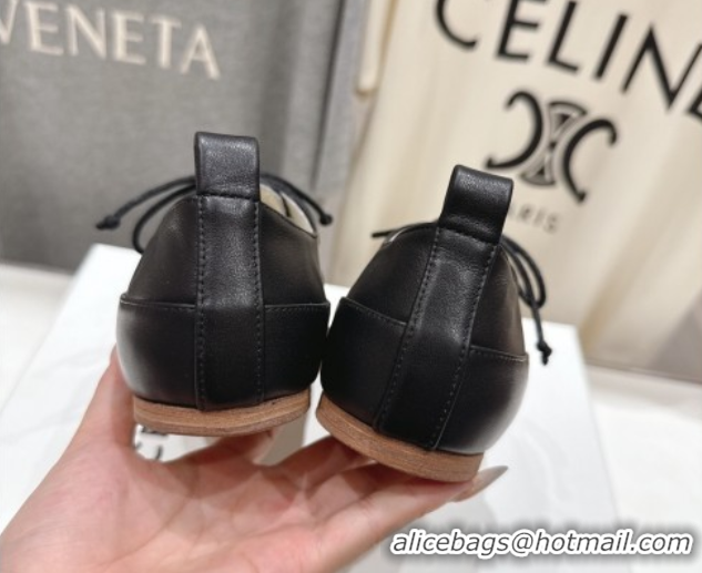 Best Grade Celine Lise Perforated Triomphe Richelieu Laced-up Shoes in Calfskin Leather Black 1024028