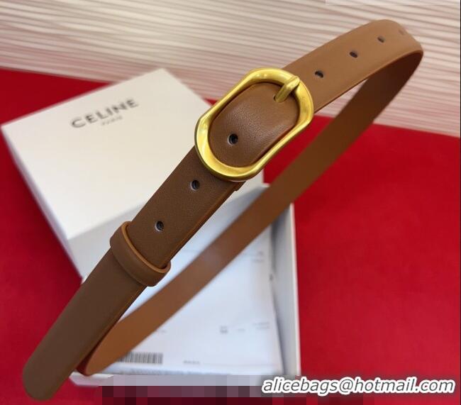 Fashion Luxury Celine Shiny Calfskin Leather Belt 1.8cm with Pin Buckle CE031603 Tan Brown/Gold 2026