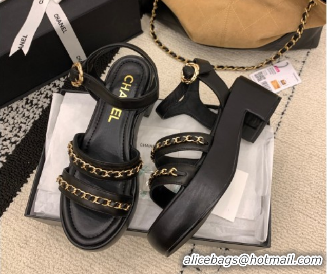 Best Grade Chanel Calfskin Leather Platform Sandals 6cm with Chain G46800 Black 2026