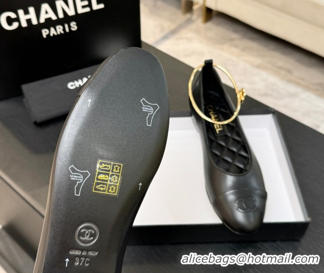 Best Price Chanel Lambskin Leather Ballet Flats with Logo Loop G46932 Black 2026