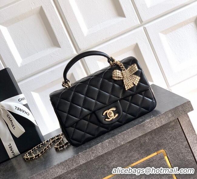 Best Grade Chanel Lambskin Leather Mini Classic Flap Handbag With Top Handle and Bow Charm AS2431 Black/Gold 2026