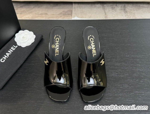 Best Grade Chanel Patent Calfskin Leather Heel Slides Sandal 9cm G46904 Black 2026