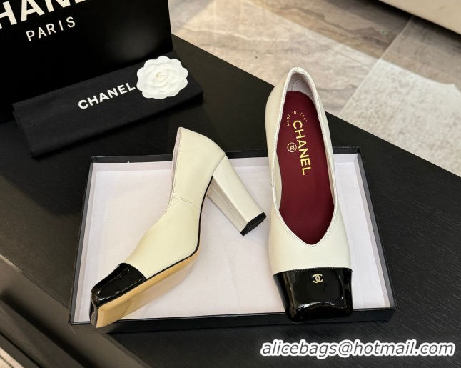 Best Price Chanel Pumps in Lambskin & Patent Calfskin 9cm Heel G47203 White Spring Summer 2026