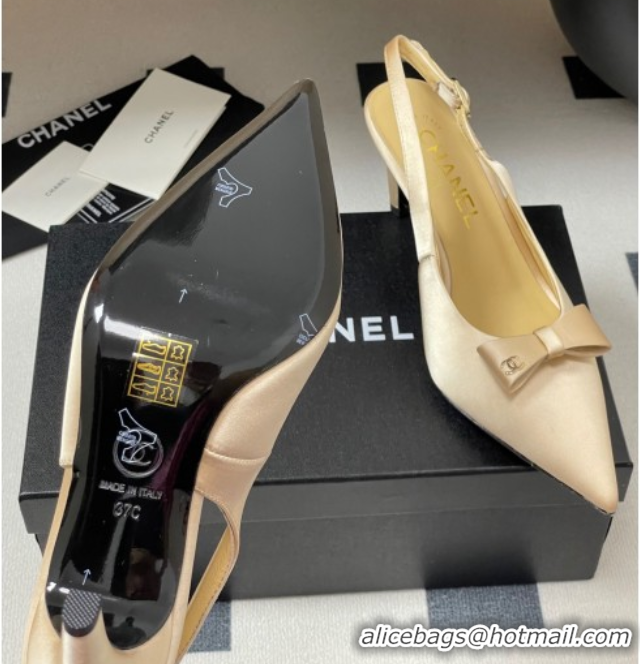 Best Grade Chanel Silk Satin Slingbacks Pumps 7.5cm Beige 2025 G46547