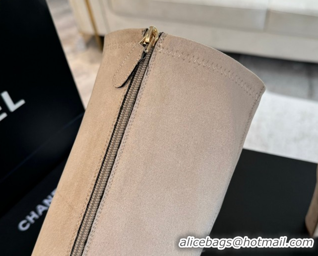 Best Grade Chanel Stretch Suede Platform High Boots 11.5cm CH122303 Beige 2026