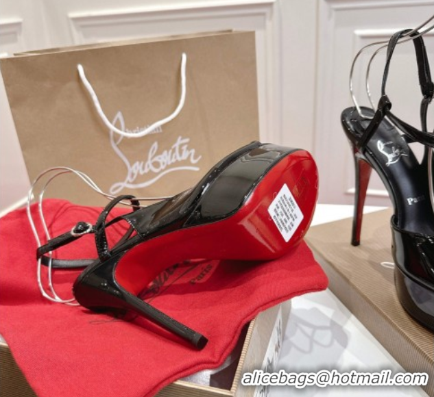 Best Grade Christian Louboutin Jenlove Alta Platform Sandals 15cm in Patent Leather Black 1030125