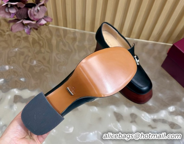 Luxurious Gucci Calf Leather Platform Pumps 9cm with Horsebit GG121804 Black 2026