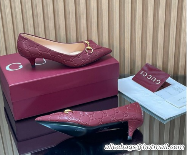 Good Looking Gucci GG Leather Pumps 4.5cm with Horsebit 853466 Burgundy 2026