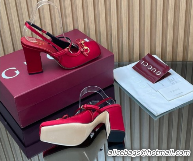 Best Grade Gucci Horsebit Slingback Pumps 9.5cm in Satin 850327 Red 2026