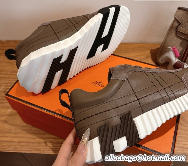 Sumptuous Hermes Bouncing Sneakers in Embroidered Leather and Suede Dark Brown 1222043 2026