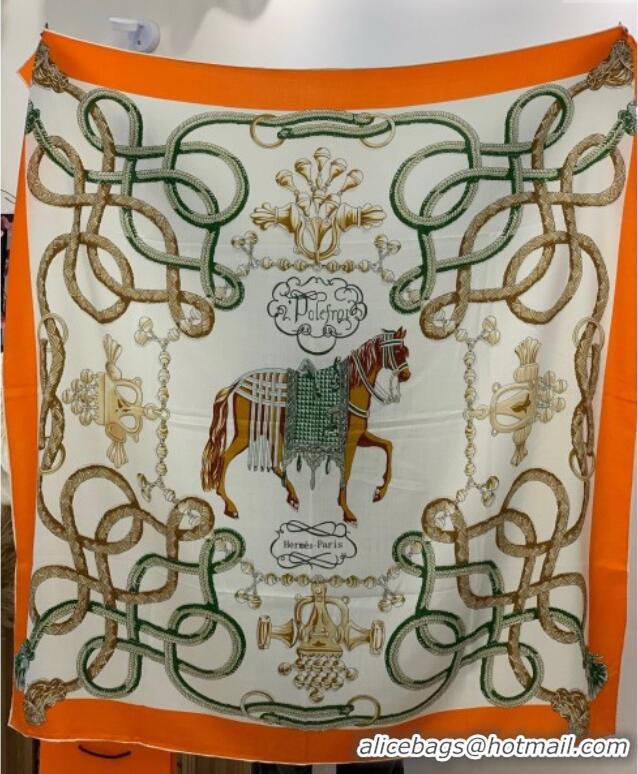 Best Grade Hermes Cord Printed Silk Cashmere Square Scarf 140cm H111137 White 2025