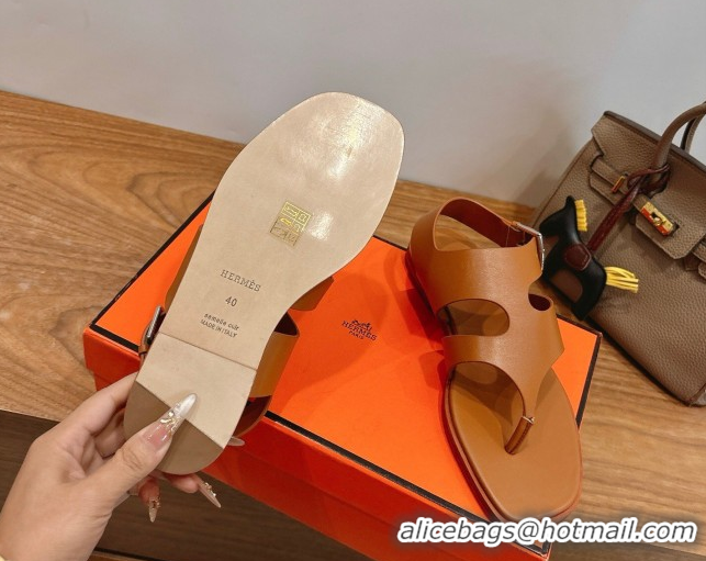 Luxurious Hermes Karen Flat Thong Sandals in Calfskin Leather Brown 2026 0304013
