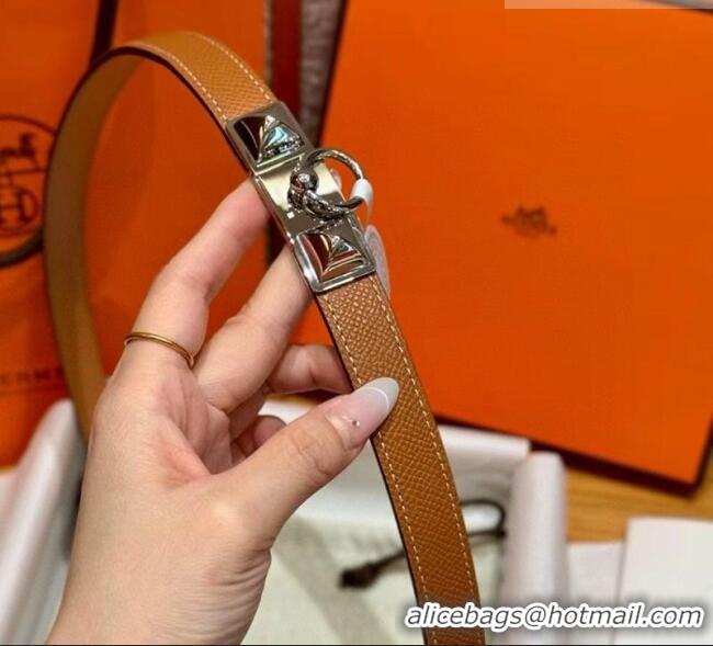 Best Grade Hermes Women's Rivale Belt 1.8cm with Two Medor Studs and Ring Buckle H5022 Brown/Silver 2025