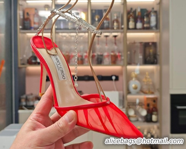 Best Grade Jimmy Choo Saeda Heel Pumps 10cm in Tulle Mesh with Strass Strap Red 0206117 2026
