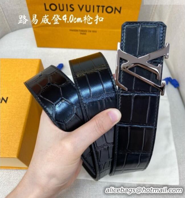 Market Sells Louis Vuitton Reversible Crocodile Embossed Leather Belt 4cm with LV Buckle LV091203 Black/Gunmetal 2025