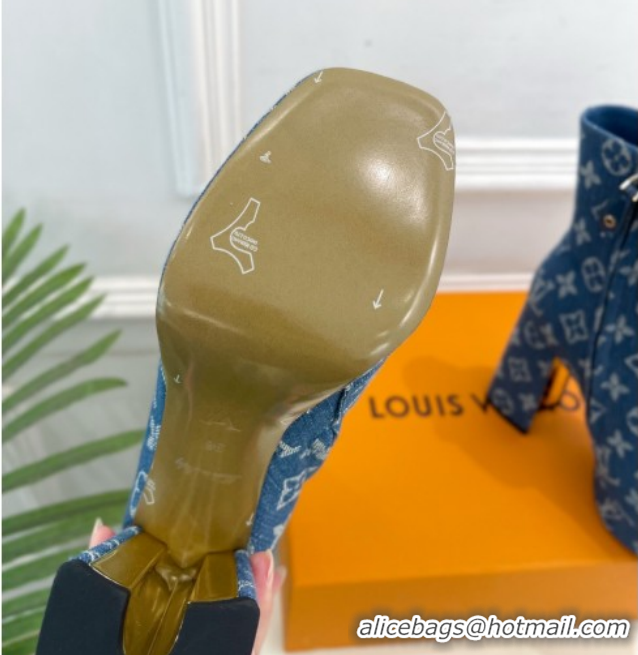 Best Grade Louis Vuitton Swing Heel Platform Ankle Boots 11cm in Monogram Denim Blue 1AID09 51021120