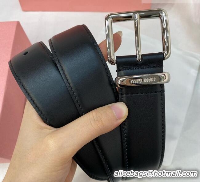 Best Grade Miu Miu Leather Belt 3.5cm 5432 Black/Silver 2024