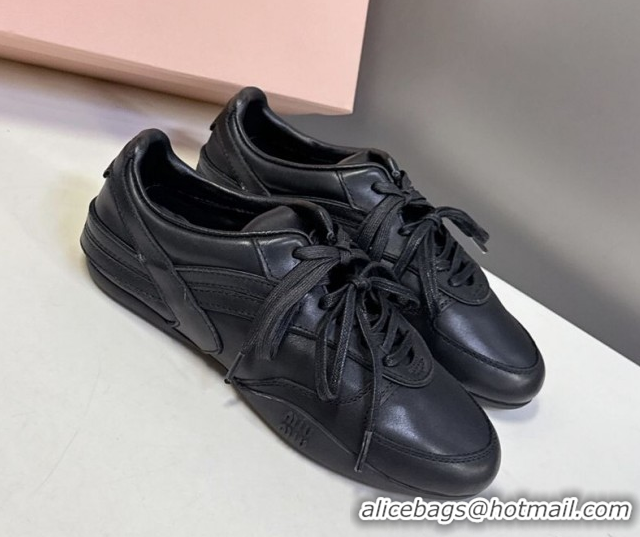 Sophisticated Miu Miu Gymnasium Leather Sneakers Black MM102401 1024107