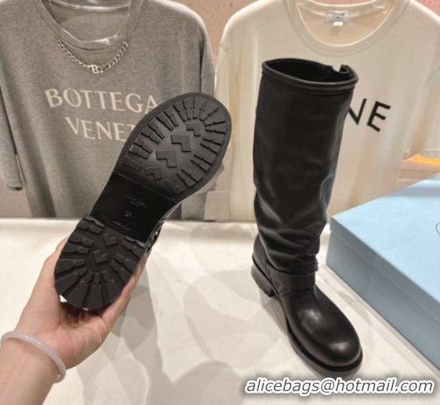 > Shoes Plaza > Prada Shoes > Best Grade Prada Leather Flat High Boots with Buckle Black 2025 PR102703 1027074