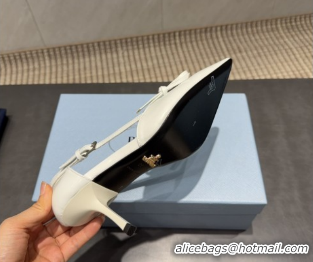 Top Grade Prada Patent Leather Heel Pumps 7.5cm with Bow Buckle White PR120602 1206011 2026