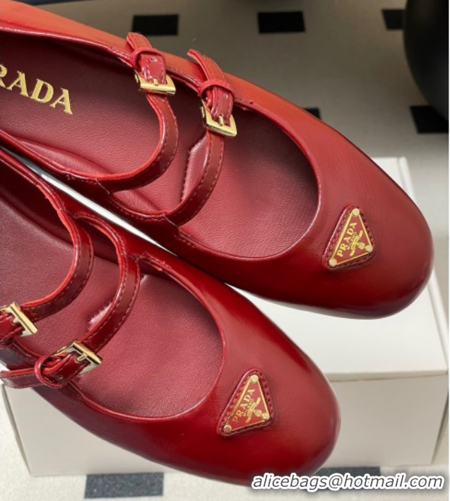 Best Grade Prada Patent Leather ballerinas flat with Double Buckle Red 2025 1F794N 1027102