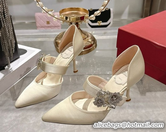 Buy Luxury Roger Vivier Bouquet Strass Flower Pumps 8.5cm in Satin 0225034 White 2026