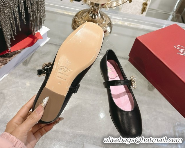 Best Grade Roger Vivier Vivier Mary Janes Ballerinas Flat in Calf Leather and Strass Black RV121202 1212019 2026