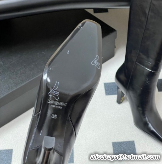 > Shoes Plaza > Yves Saint Laurent Shoes > Best Grade Saint Laurent Jill Heel High Boots 8cm in Shiny Leather Black 1213020