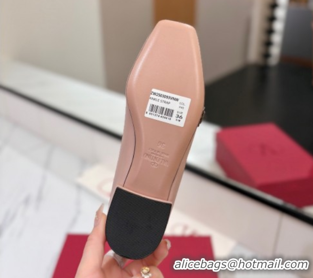Best Grade Valentino Preshoes Mary-Jane Ballerinas Flat with Jeweled Button in Nappa Leather Light Pink 0821008