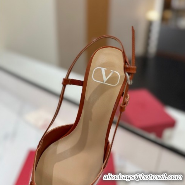 Best Grade Valentino VLogo Signature Slingback Pumps 4.5cm in Patent Calfskin Brown VA082111
