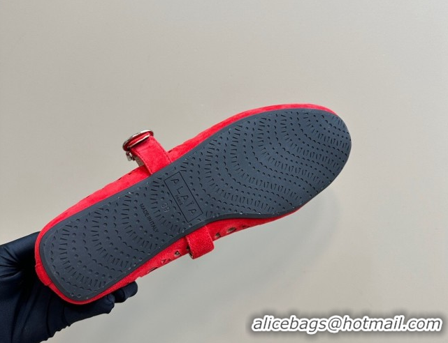 Best Luxury Alaia Ballet Flat in Openwork Suede Red 1223005