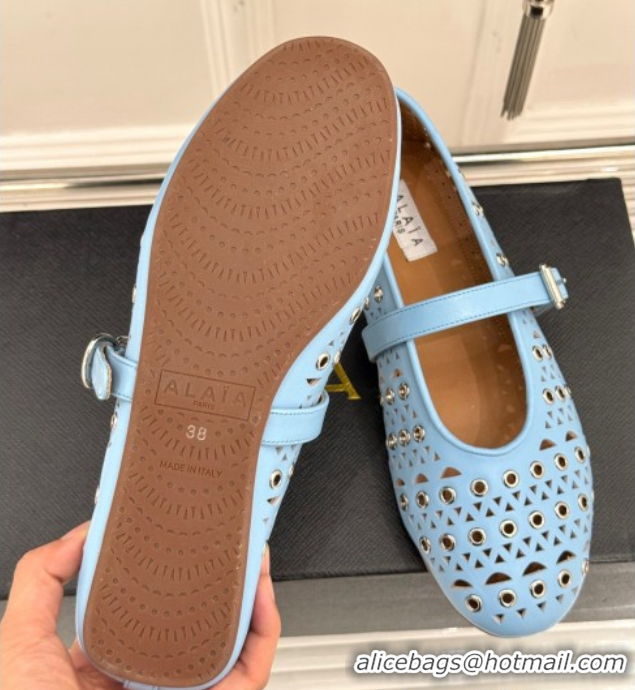 > Shoes Plaza > Alaia Shoes > Best Price Alaia Ballet Flat in Openwork Leather with Eyelet Light Blue 1223015