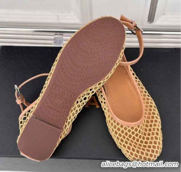 Best Price Alaia Ballet Flats in Fishnet and Ankle Strap Yellow 1112006