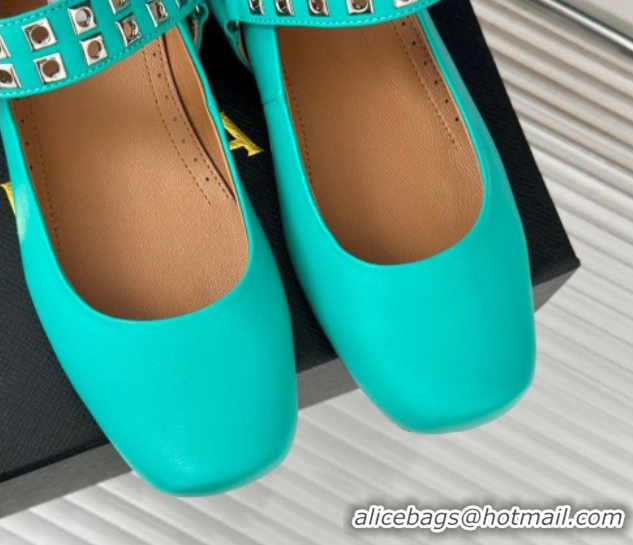 Best Price Alaia Ballet Flats with Eyelet Studs and Buckle in Calfskin Green 2024 AL100807 1008032